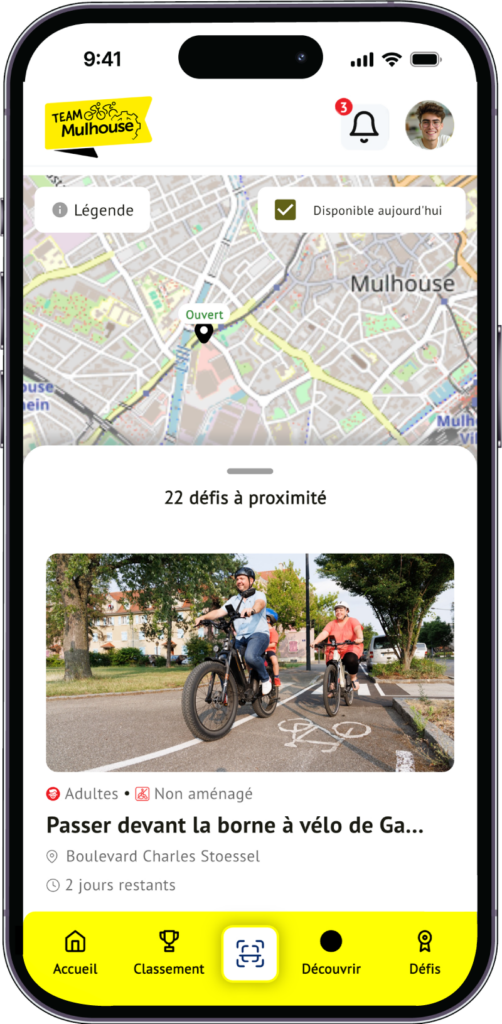 Jusqu’au 18 juillet, date du passage du Tour de France à Mulhouse, la Ville de Mulhouse relance son jeu « Team Mulhouse » spécialement teinté de jaune pour l’occasion. Cette application gratuite permet à tous les mulhousiens de jouer dans la ville en réalisant des défis. Plus on réalise des défis et plus on cumule des points, ce qui permettra aux meilleurs joueurs du classement de gagner de jolies surprises !